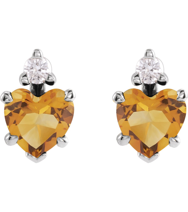 88617 Earring Set Natural Citrine Heart 6 X 6 Mm 14K White Natural Diamond Pair Friction Backs Included Polished Natural Citrine And .06 Ctw Natural Diamond 5-Claw Prong Earrings