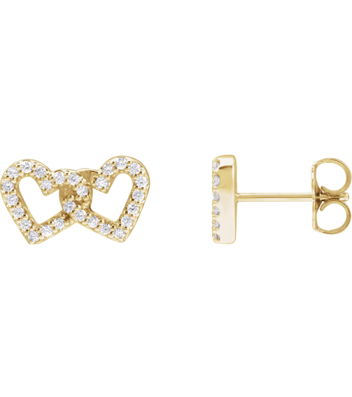 88758 Earring Set Natural Diamond Round 1 Mm 14K Yellow Pair Friction Backs Included Polished 15 Ctw Natural Diamond Interlocking Heart Stud Earrings